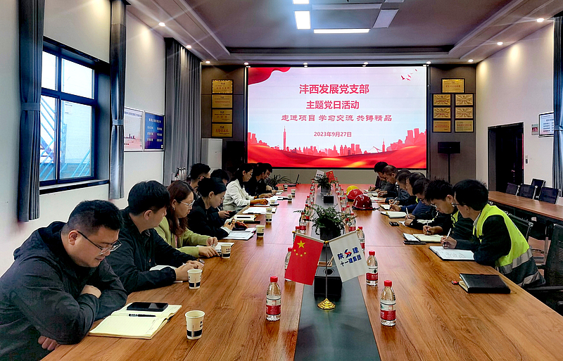 9月27日,灃西發(fā)展黨支部組織黨員干部前往曹家灘創(chuàng)新中心項(xiàng)目現(xiàn)場(chǎng),開展“走進(jìn)項(xiàng)目、學(xué)習(xí)交流、共鑄精品”主題黨日活動(dòng),并召開學(xué)習(xí)交流座談會(huì)。全體黨員與項(xiàng)目一線人員共同學(xué)習(xí)安全生產(chǎn)工作、平安建設(shè)有關(guān)工作、國(guó)慶期間氛圍營(yíng)造宣傳工作的部署要求,聽取項(xiàng)目有關(guān)情況介紹,并與項(xiàng)目一線人員進(jìn)行了座談交流。