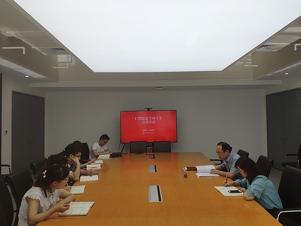 2019年8月6日下午,合同預算部組織召開掃黑除惡專項斗爭宣講會,會議由集團公司副總張桂林同志主持,合同預算部全體干部員工參加。