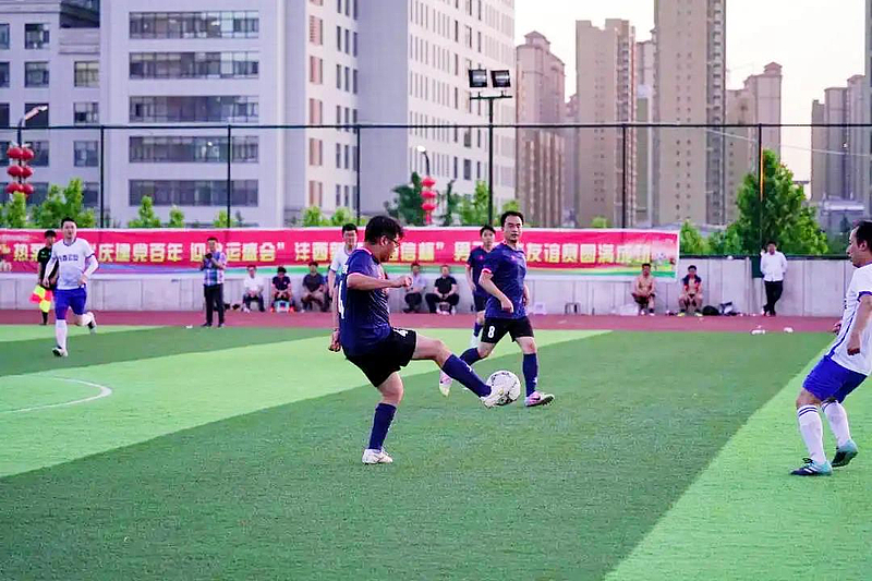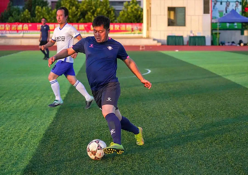 按照比賽規定,灃西集團代表隊將分別與其他5支隊伍進行競技切磋,在賽場上揮灑汗水鑄就王者之夢,技藝拼搏錘煉團隊戰斗力。截止目前,灃西集團運動健兒分別與灃西公安、教育衛體局逐鹿綠茵賽場,取得了連勝兩場的佳績。賽場上隊員們球技嫻熟、配合默契、靈活善戰,場面異常激烈精彩,完美演繹了足球運動無窮的魅力與激情,無不詮釋了“更高、更快、更強”的體育精神。