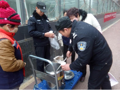 云尚餐廳服務(wù)人員為除雪人員送姜湯