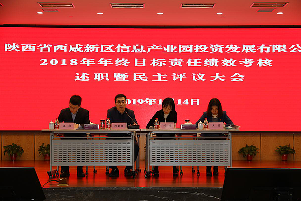 1月14日,信息產(chǎn)業(yè)園公司組織召開2018年年終目標(biāo)責(zé)任績效考核述職暨民主評議大會。