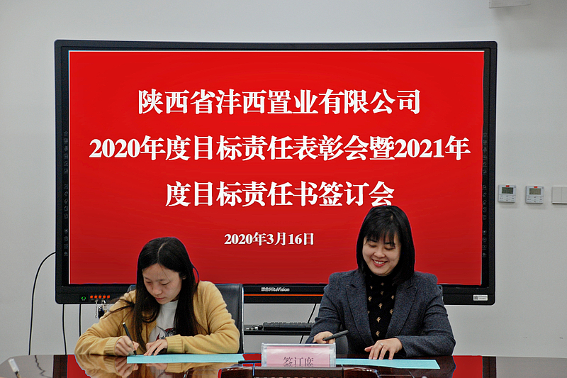 會議宣讀了《陜西省灃西置業有限公司關于表彰2020年度先進個人及最佳貢獻獎項獲得者的決定》,對榮獲先進個人及最佳貢獻獎的員工進行表彰。會上,公司分管領導與各部門負責人簽訂2021年度目標責任書及安全生產目標責任書。